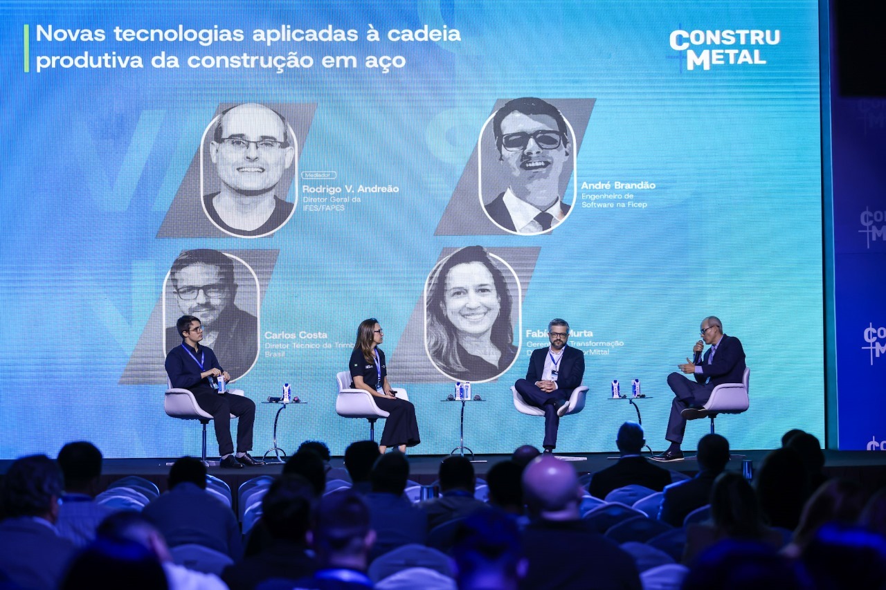 O painel “Novas tecnologias aplicadas à cadeia produtiva da construção em aço” trouxe uma reflexão profunda sobre como o BIM, a realidade aumentada, a IA e outras tecnologias inovadoras podem transformar não apenas o projeto e fabricação de estruturas metálicas, mas também a manutenção delas, otimizando processos e fortalecendo toda a cadeia produtiva.